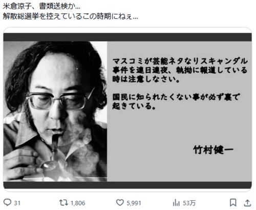 今は邦アニベストテン2025の投票中で政治的なことは書きたくないのですが、どうしても書きたいことがあります。解散総選挙と米倉涼子が書類送検を結びつける陰謀論があります。Xでは↓のリポスト数が多いです。著名なアカウントの方も賛同目的でリポストして…